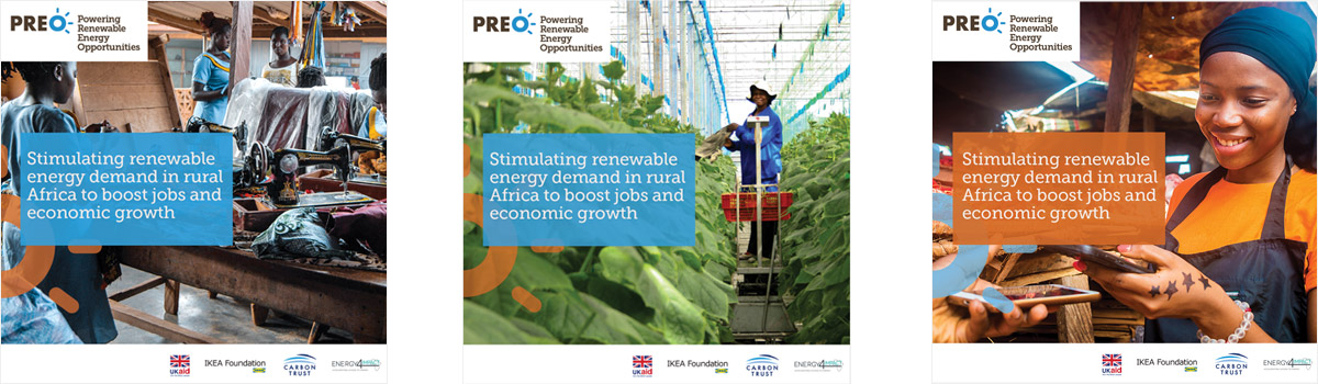 Working with the Carbon Trust, Lime Creative designed the branding and website for PREO - Powering Renewable Energy Opportunities, a renewable energy fund supported by UK aid, IKEA Foundation and Energy 4 Impact. The website serves to attract grantees to apply for the fund, and to tell their stories.