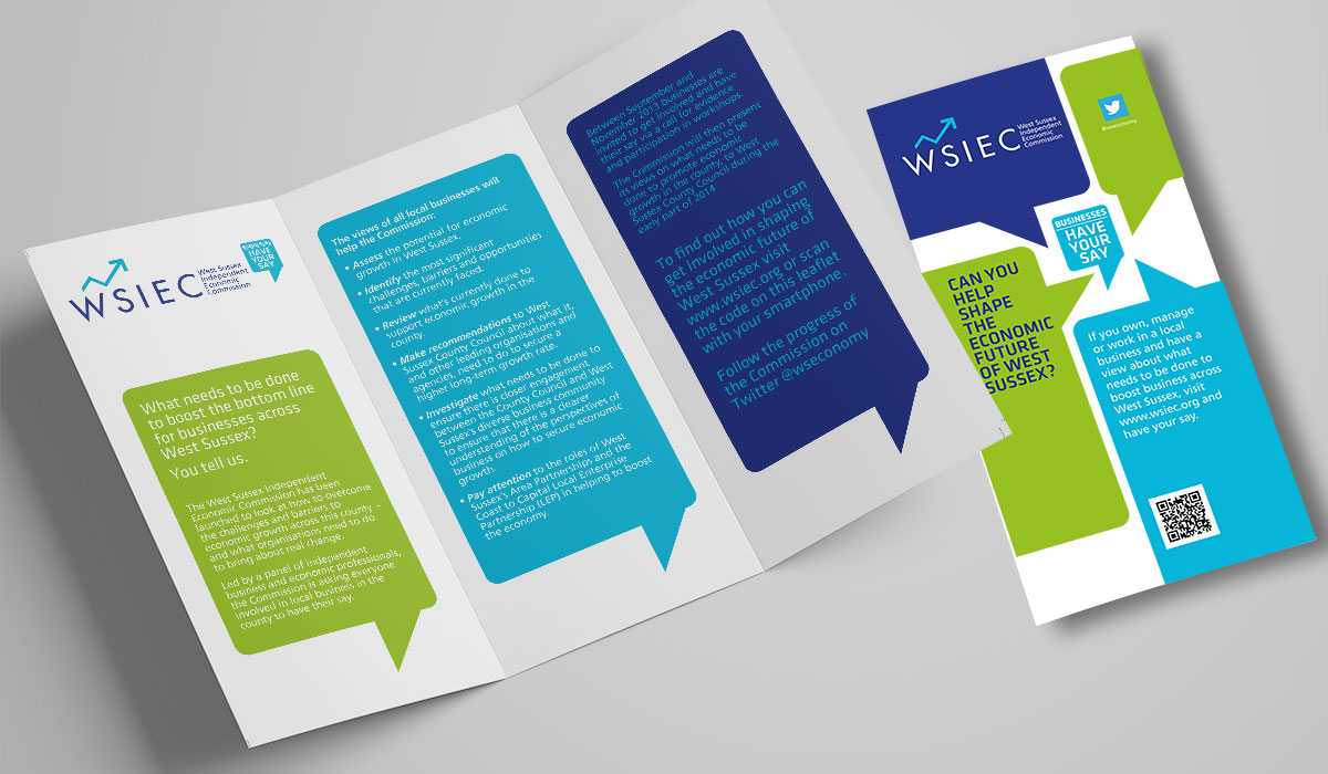 The West Sussex Independent Economic Commission invited everyone involved in local business to have their say about how to overcome the challenges to economic growth. The solution is a striking design with large, colourful speech bubbles.